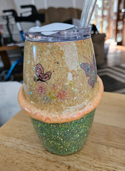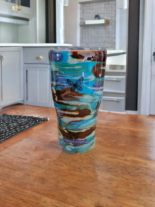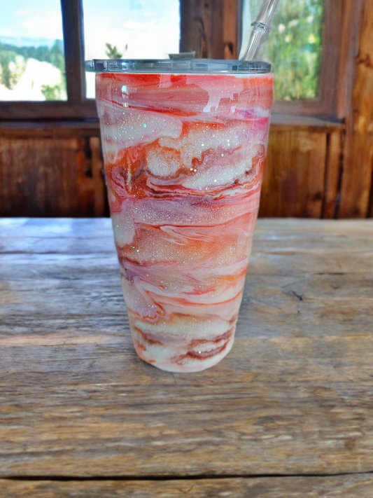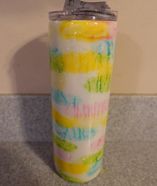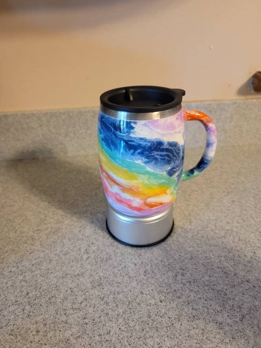 14oz Round Coffee Mug. Rainbow design, stainless steel insulated.